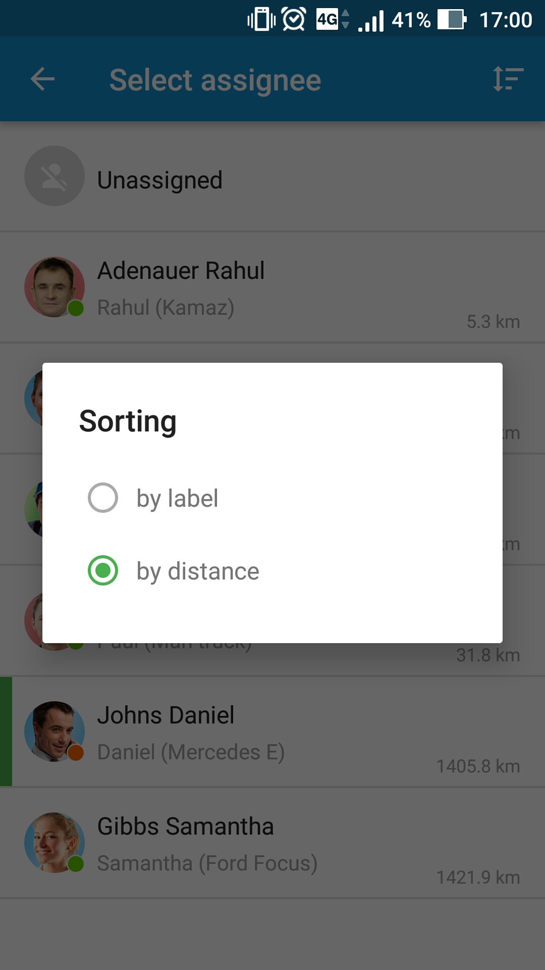 - When changing a task performer, you can select the nearest employee. This will allow to make prompt and right decisions and raise work efficiency.